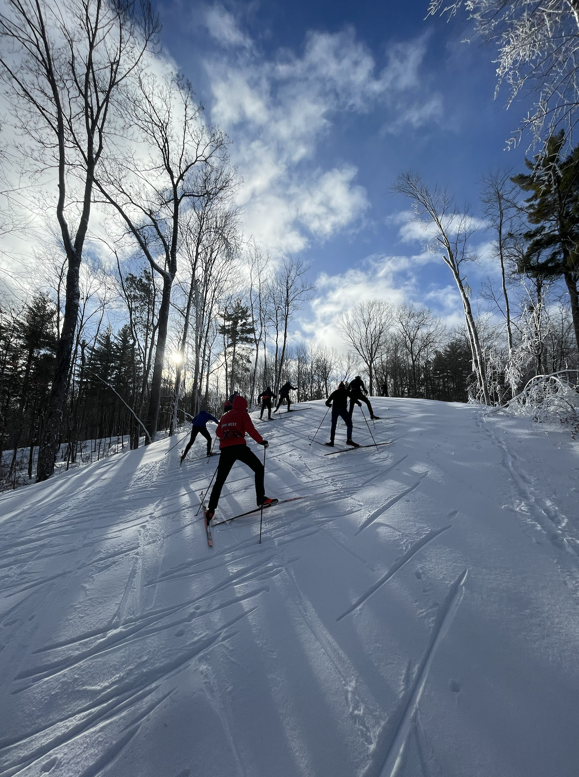 Winter practices are a great way to compliment your high school training. Our 3 days a week were designed to have little conflict with high school ski practices. You will get more time on snow, work on technique (like striding, double pole, double pole kick, V1, V2, V2 alternate), race tactics (like starts, downhills, racing in a pack, finish lunge), intervals and more.